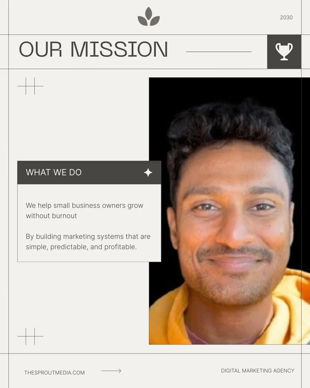 Sprout Media is a results-driven growth partner for founders who refuse to stay stuck. We combine data, creativity, and proprietary AI to help small businesses, eCommerce brands, jewelers, florists, and service companies unlock predictable revenue.