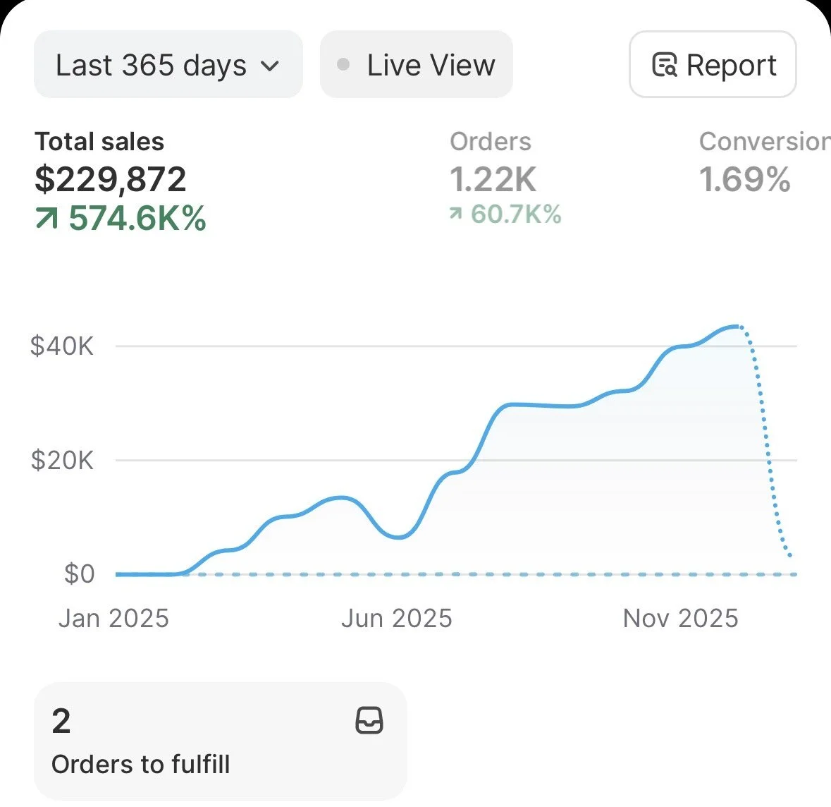 Starting with minimal demand and no structured funnel, this brand scaled to $229,872 in sales by first building demand capture and conversion infrastructure before increasing spend. Ads were layered only after the system was proven, resulting in stable growth, 1.69% conversion rate, and predictable revenue.